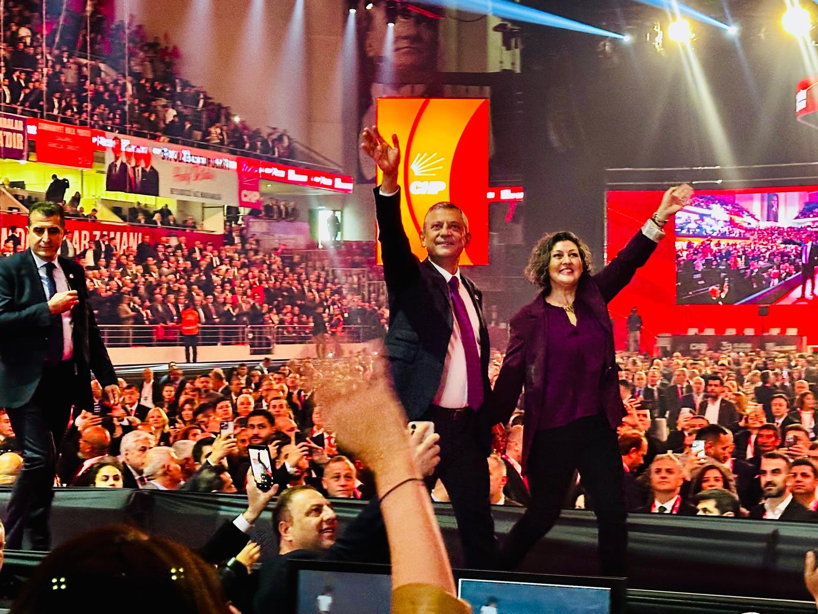CHP lideri Özgür Özel ve eşi Didem Özel’in salona girişinin ardından Almanya Başbakan Yardımcısı, Alman Sosyal Demokrat Parti (SPD) Eş Genel Başkanı Lars Klingbeil‘in mesajı sinevizyondan izletildi. Lars, İmamoğlu ve tüm tutuklu belediye başkanlarının serbest bırakılması çağrısı yaptı.