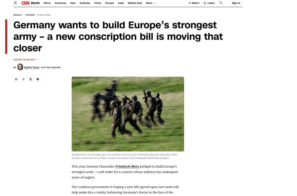 CNN, Almanya’nın asker sayısını 2035’e kadar 180 binden 260 bine çıkarma girişimini yazdı.