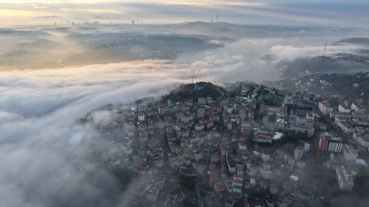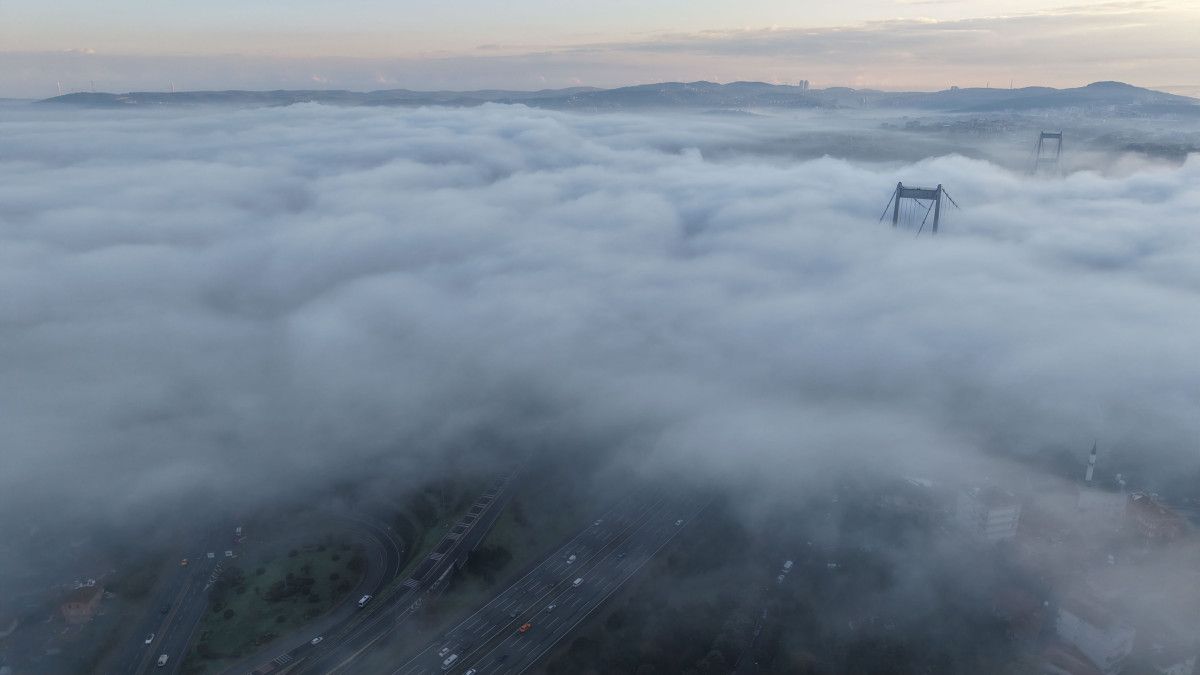 15 Temmuz Şehitler Köprüsü ve Fatih Sultan Mehmet Köprüsü sis bulutlarının altında kaldı. Boğazda oluşan eşsiz manzara havadan görüntülendi.