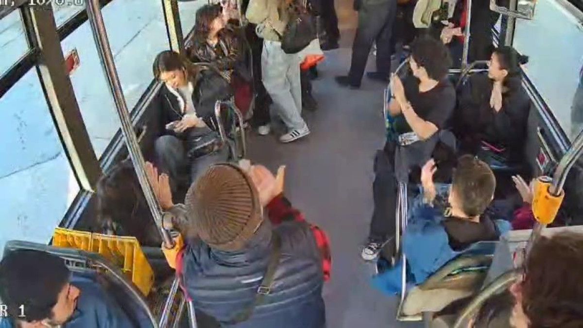 Otobüsteki diğer yolcular da öğretmenleri alkışladı. O anlar otobüsün güvenlik kamerasınca kaydedildi.