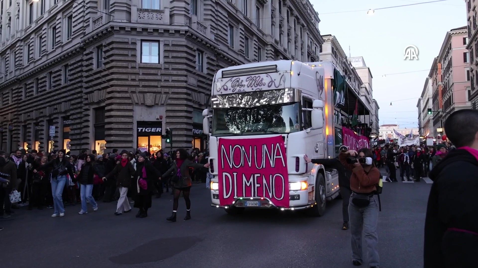 İtalya’da kadınlar ellerinde pankartlar ile 25 Kasım Kadına Yönelik Şiddete Karşı Mücadele Günü dolayısıyla görkemli bir yürüyüş düzenledi.