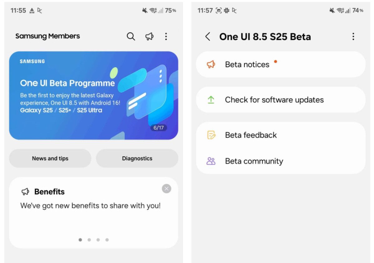 Yeni arayüzü deneyimlemek isteyen kullanıcıların, öncelikle telefonlarında bulunan Samsung Members uygulaması üzerinden beta programına kayıt olmaları gerekiyor.