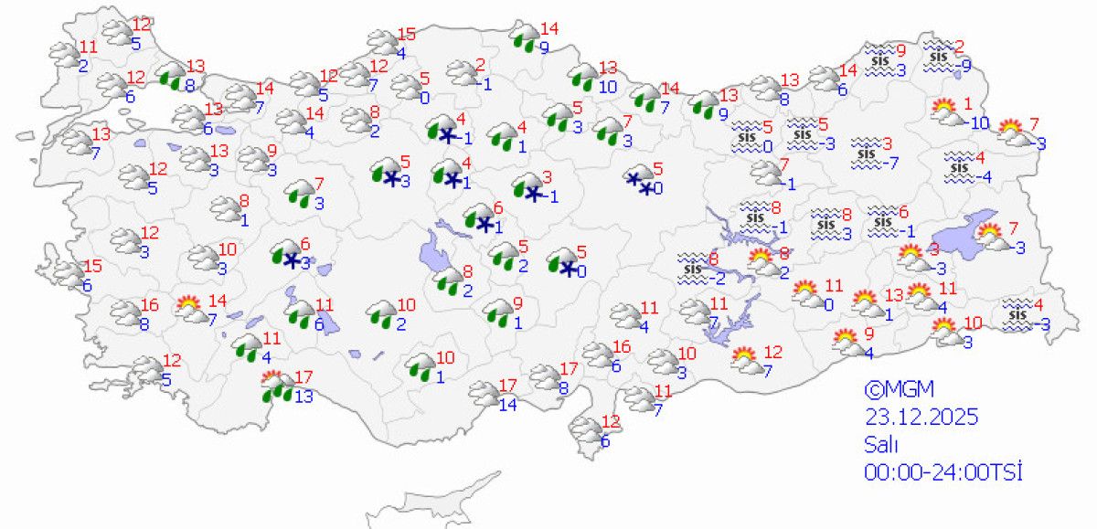 Orta Anadolu’da sıcakların 5-12 derece, doğuda ise hala sıfırın altında değerler olması beklenşyır.